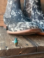 A true desert-toned beauty, this Nevada Blue Diamond turquoise ring features a striking blend of vibrant blue and warm earthy matrix in a soft elongated shape. Finished with a subtle silver border and delicate bead detailing at the top, it carries just enough character while keeping a clean, timeless feel.