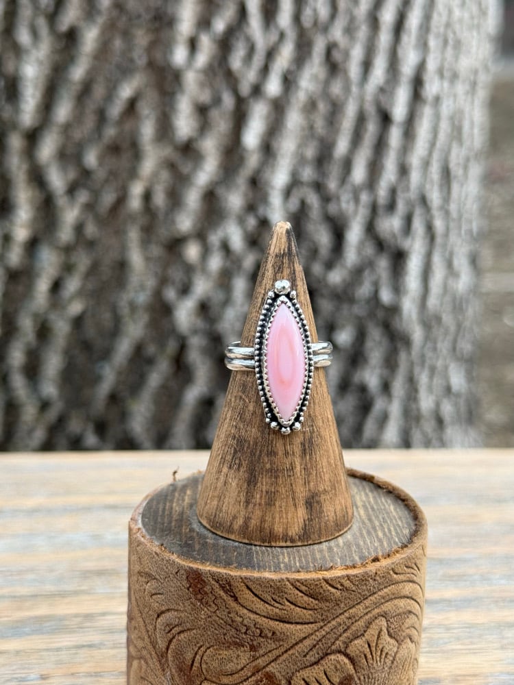 A timeless statement ring featuring a soft pink conch stone in an elegant marquise shape, set in sterling silver.