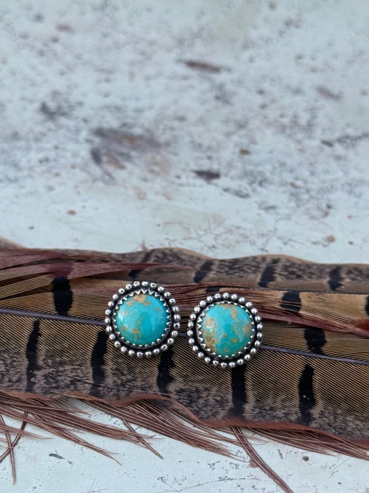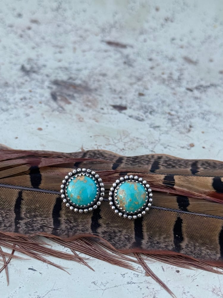 No two turquoise stones are ever the same, making this pair completely one of a kind. The round shape and classic silverwork make these an easy everyday turquoise stud while still offering a bold pop of color.