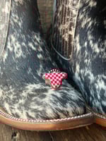 Playful meets western in the Cherry Rodeo Ring — a bold statement piece featuring a vibrant pink and white checkered stone set in sterling silver.
