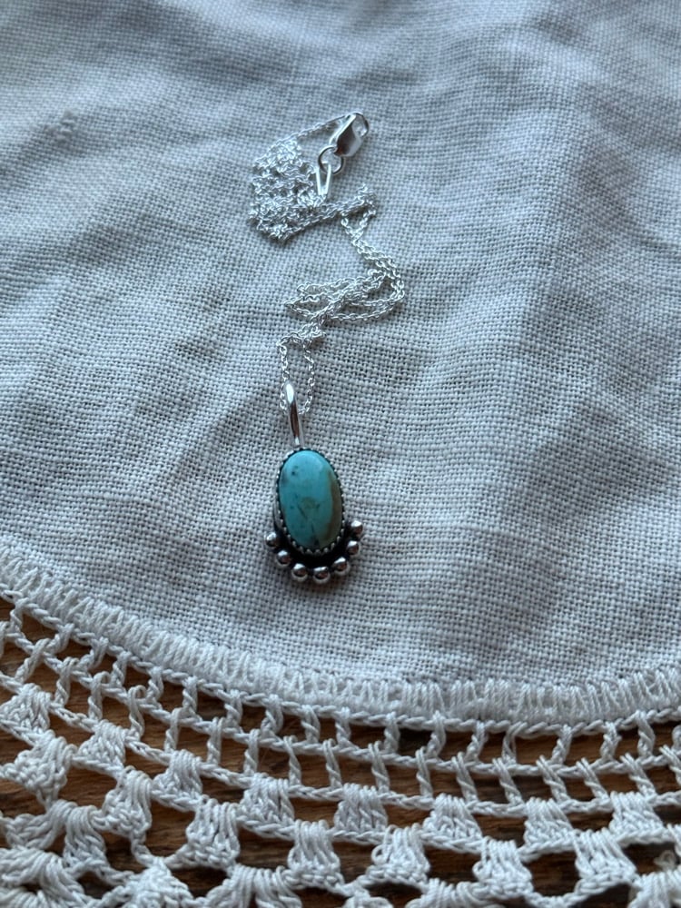 A simple, everyday piece with a touch of western character. This necklace features a genuine turquoise stone set in sterling silver, finished with a subtle beaded detail that adds just the right amount of texture.