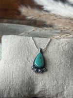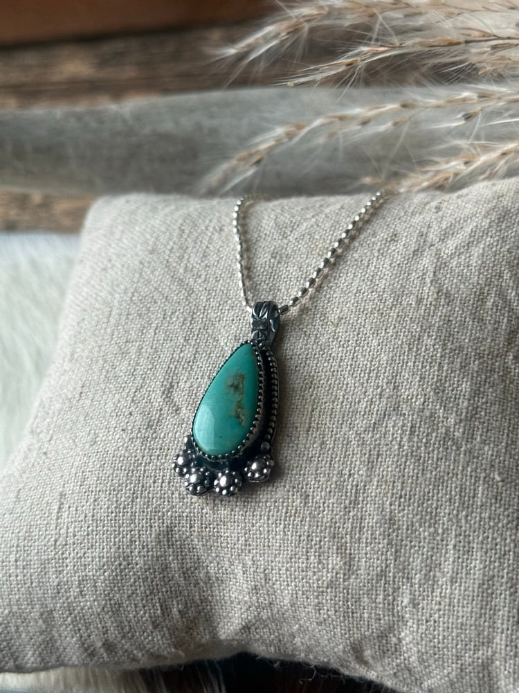 Elegant and timeless, the Prairie Bloom Turquoise Necklace captures the spirit of the Southwest with a touch of Western romance. This handcrafted piece features a vibrant teardrop-shaped turquoise stone, admired for its serene blue-green hue and natural earthy matrix.