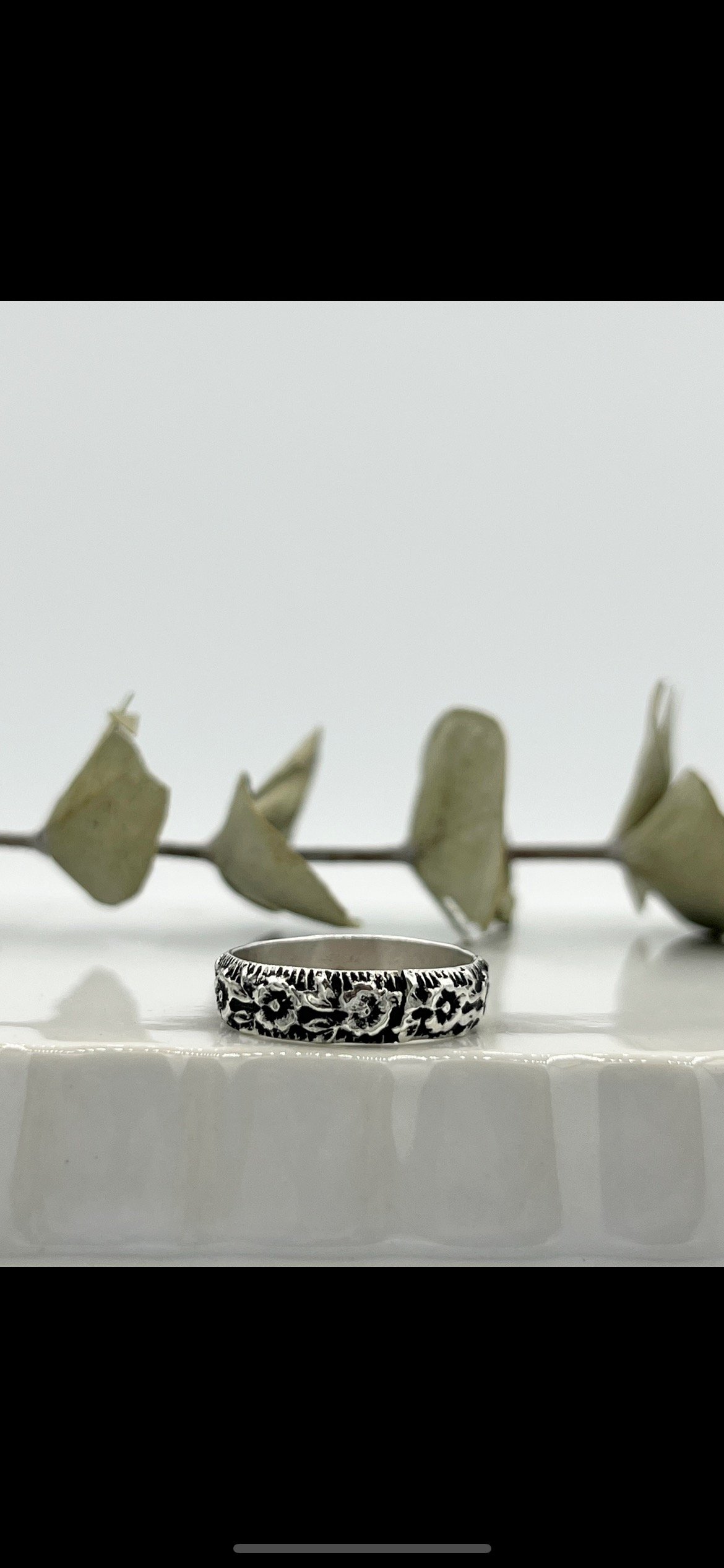 Delicate yet detailed, the Briar Rose Stacker is a romantic take on a classic western floral design. Handcrafted from solid sterling silver, this band features a vintage-inspired rose pattern that brings timeless beauty and a touch of femininity to your stack. Perfect worn solo or paired with other favorites for a layered look that tells your story.
