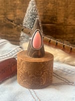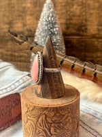 Soft, elegant, and effortlessly eye-catching — the Wild Spur Ring features a dreamy pink conch teardrop stone with that signature glossy pastel glow. The stone is framed in a classic rope border, adding depth and texture while keeping the focus on that perfect shade of blush pink.